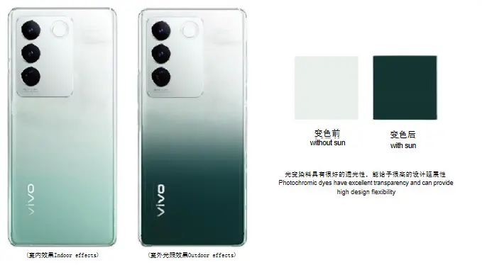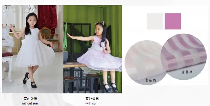 Fotochrominė medžiaga – fotochrominė miltelių medžiaga, gaminama specialių procesų metu įvyniojant fotochrominius dažus į mikrokapsules, kurie po saulės spindulių (ultravioletinių) spindulių gali sugerti saulės spindulių (ultravioletinių) energiją, todėl pasikeičia molekulių struktūra, pasikeičia absorbcijos bangos ilgiai, dėl to keičiasi spalva; Praradus saulės šviesos (ultravioletinę) energiją, ji grįžta į pradinę molekulinę struktūrą ir atkuria pirminę spalvą. Charakteristika: